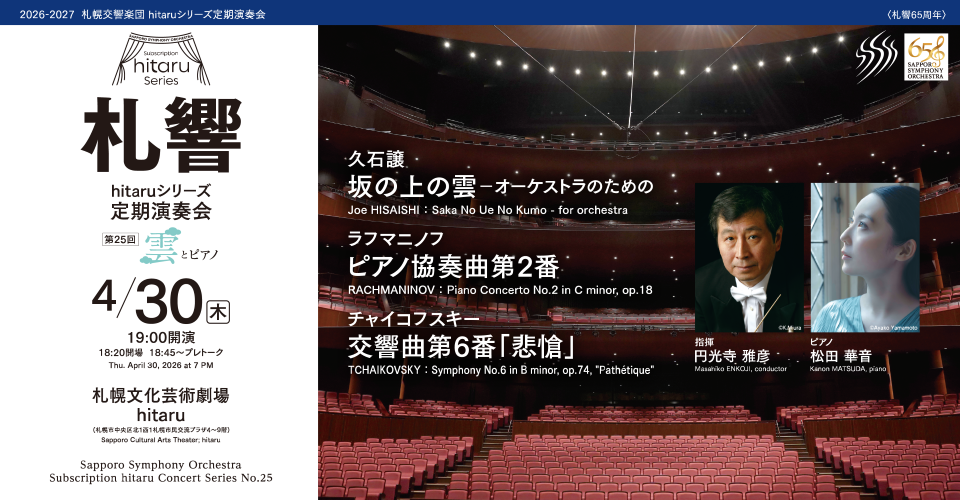 3月19日(木) 開演19時(プレトーク18:45~、開場18:20)札幌文化芸術劇場hitaruにて開催の『hitaruシリーズ定期演奏会 第24回』は、 大植英次(指揮)、児玉隼人(トランペット)