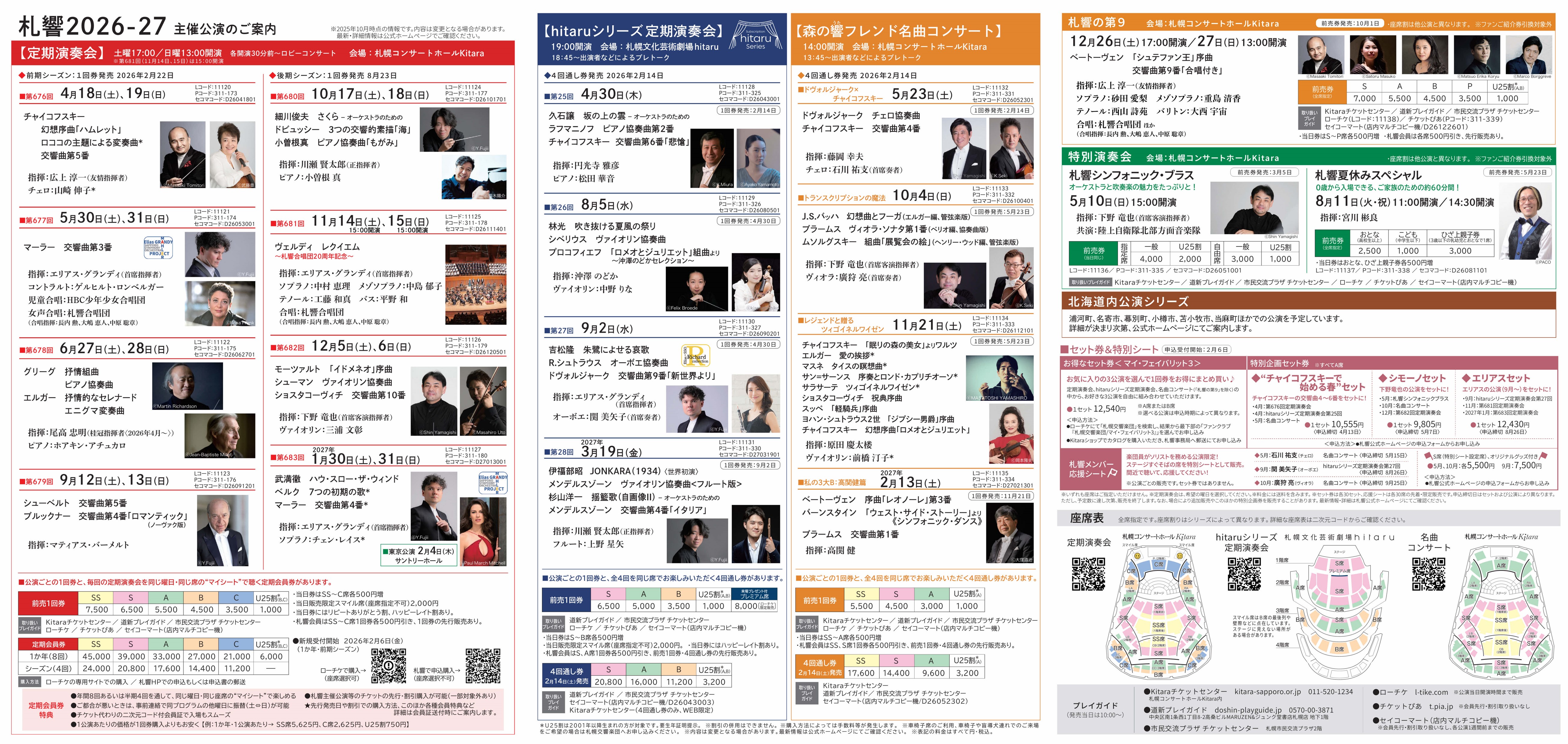 新シーズンも 3つの演奏会シリーズを中心に札響をお楽しみください。