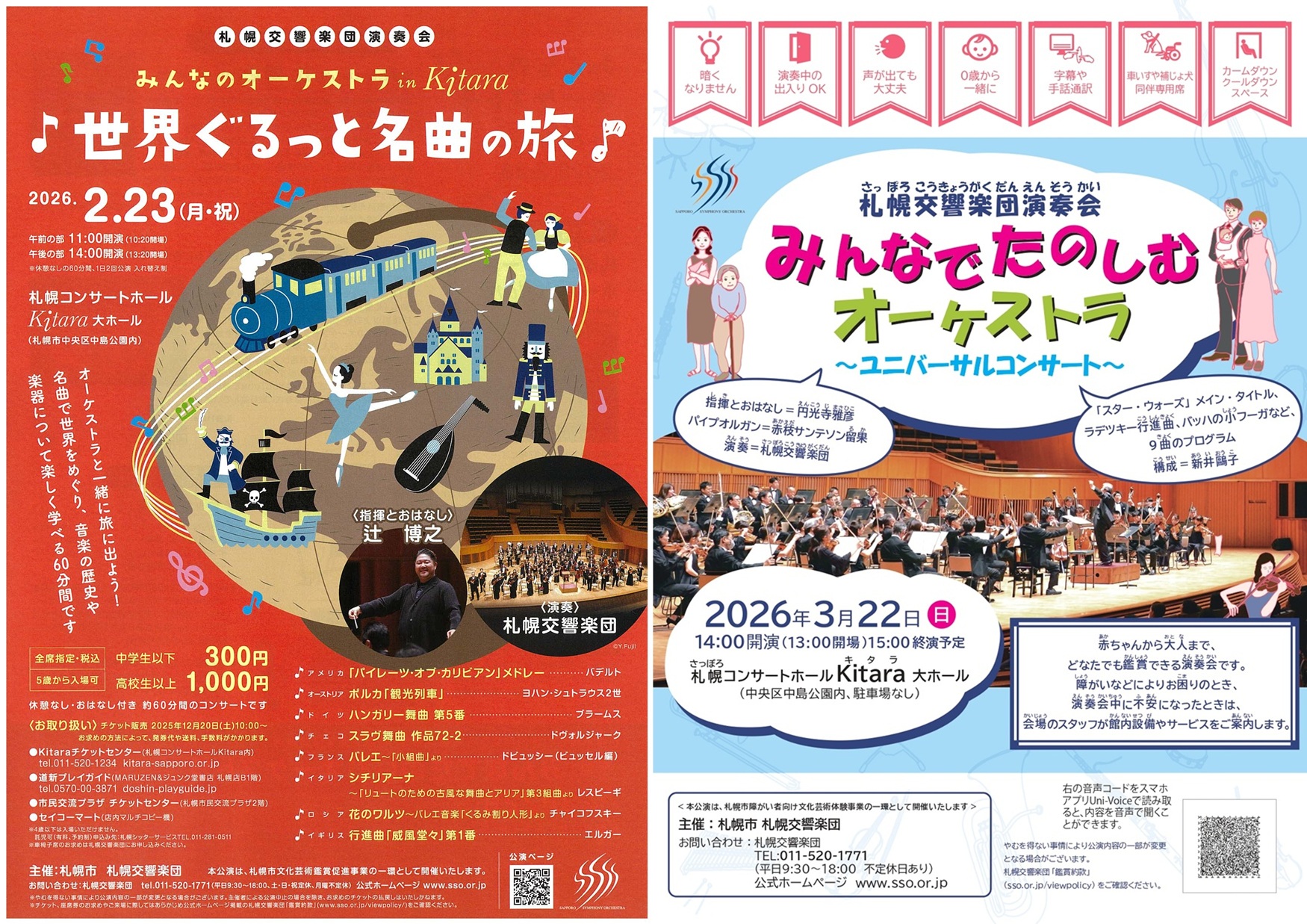 ・プレイガイド:Kitaraチケットセンターのみ(車いす、補じょ犬同伴席は、札幌交響楽団へお申し込みください)