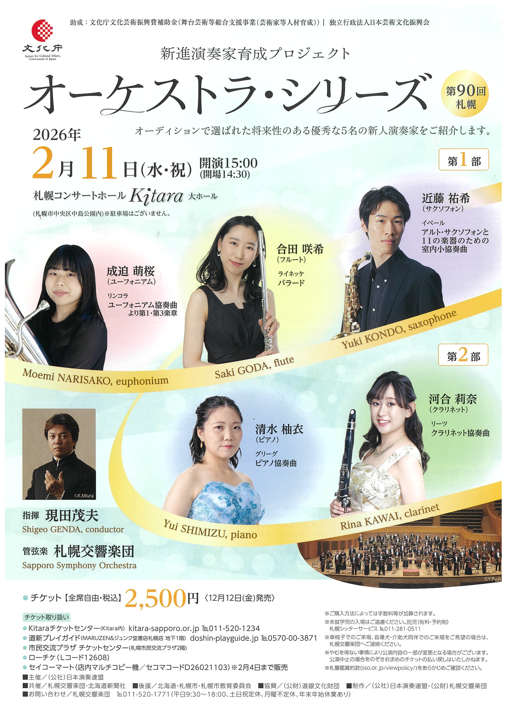 2月11日(水・祝) 開演15時(開場14時30分)、札幌コンサートホールKitaraにて開催の『新進演奏家育成プロジェクト オーケストラ・シリーズ 第90回札幌』は、