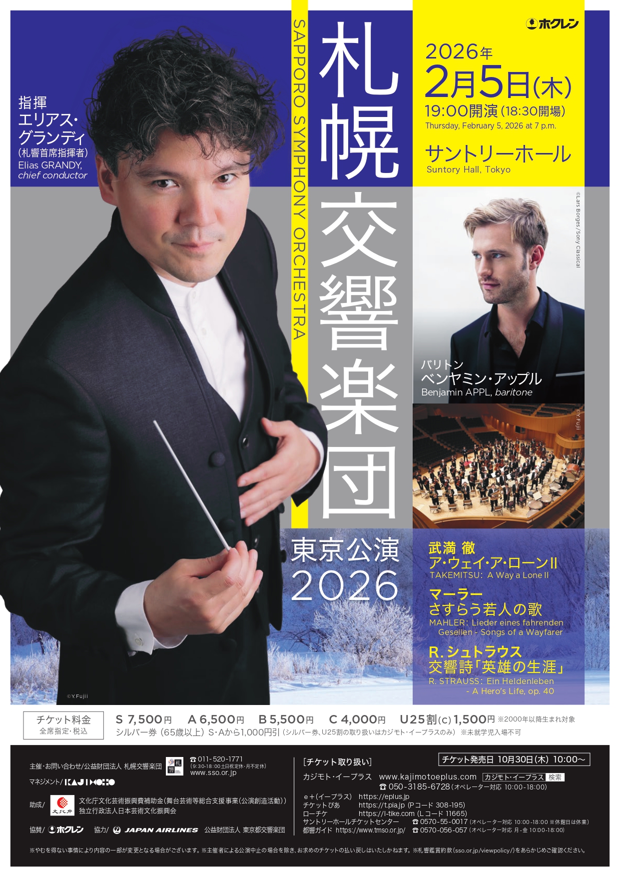 2月5日(木)午後7時から「サントリーホール」にて開催の『札響東京公演2026』は、