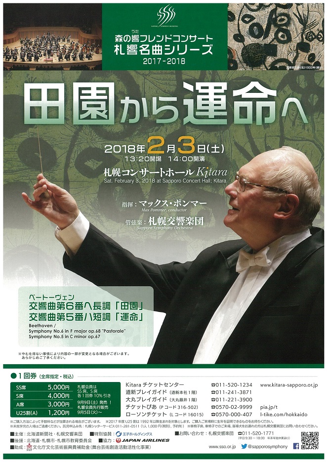森の響フレンドコンサート/札響名曲シリーズ「田園から運命へ」 2018年2月 3日(土)14:00~ 札幌コンサートホールKitara