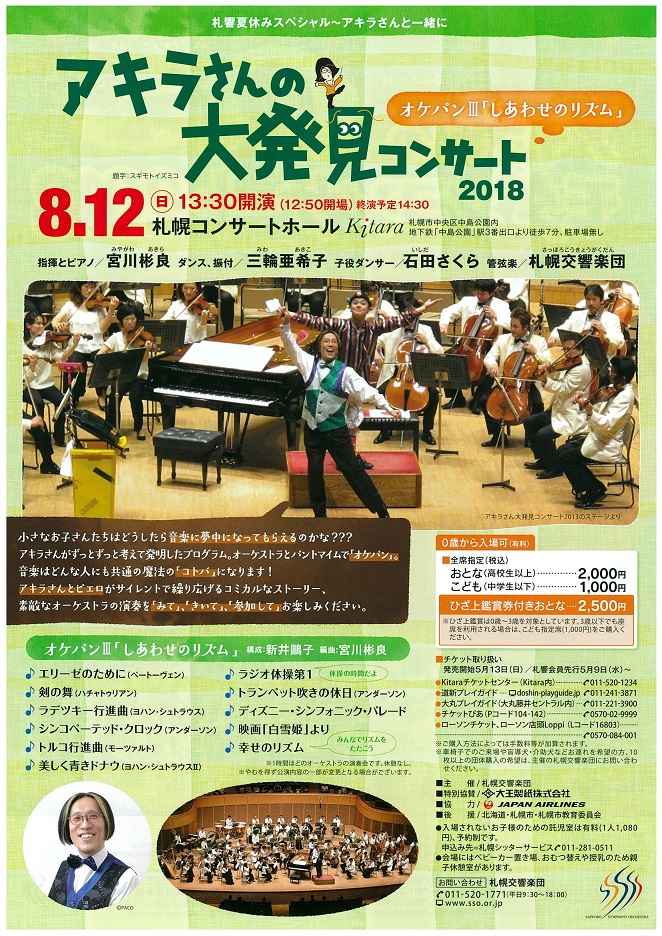 アキラさんの大発見コンサート2018「オケパンⅢ~しあわせのリズム」 2018年8月12日(日)13:30~ 札幌コンサートホールKitara
