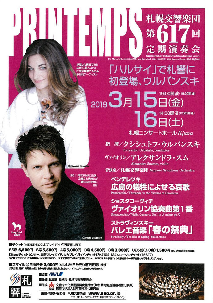 2025-2026シーズンの後期、10月~3月開催分の『札幌交響楽団定期演奏会』...