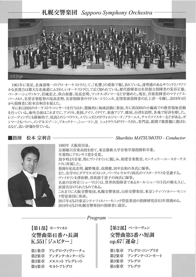 創立65周年を迎える札幌交響楽団の2026-2027シーズンの主催演奏会のプログ...