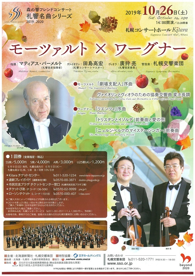 創立65周年を迎える札幌交響楽団の2026-2027シーズンの主催演奏会のプログ...