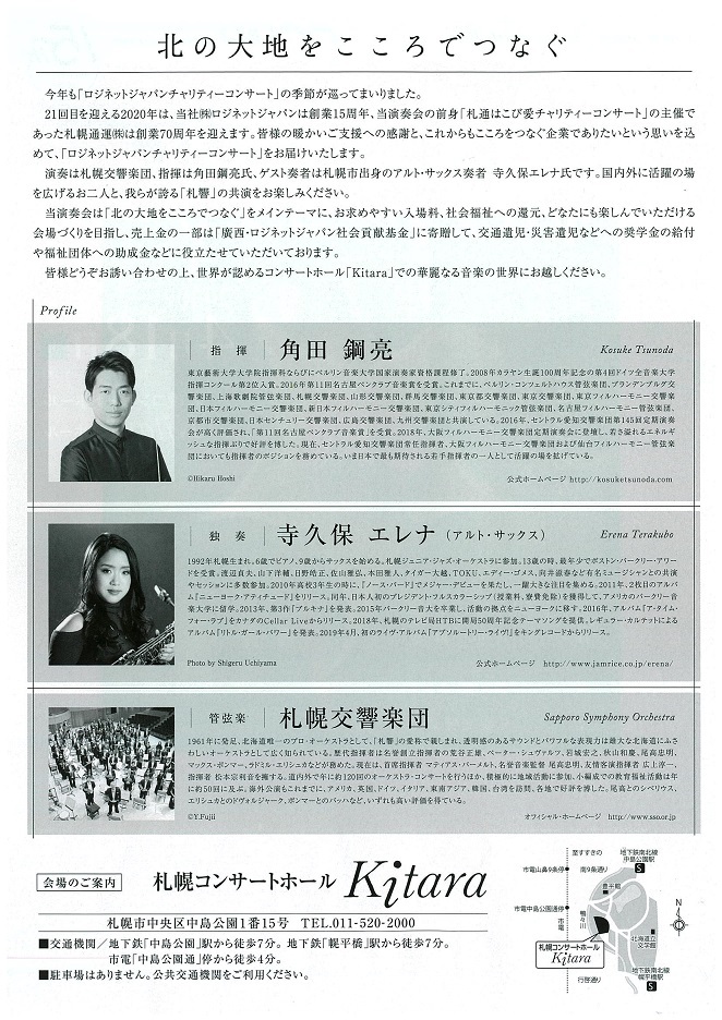 | お問い合せ先 | ㈱ロジネットジャパンコンサート事務局(011-251-7755、平日9:00~17:00) |