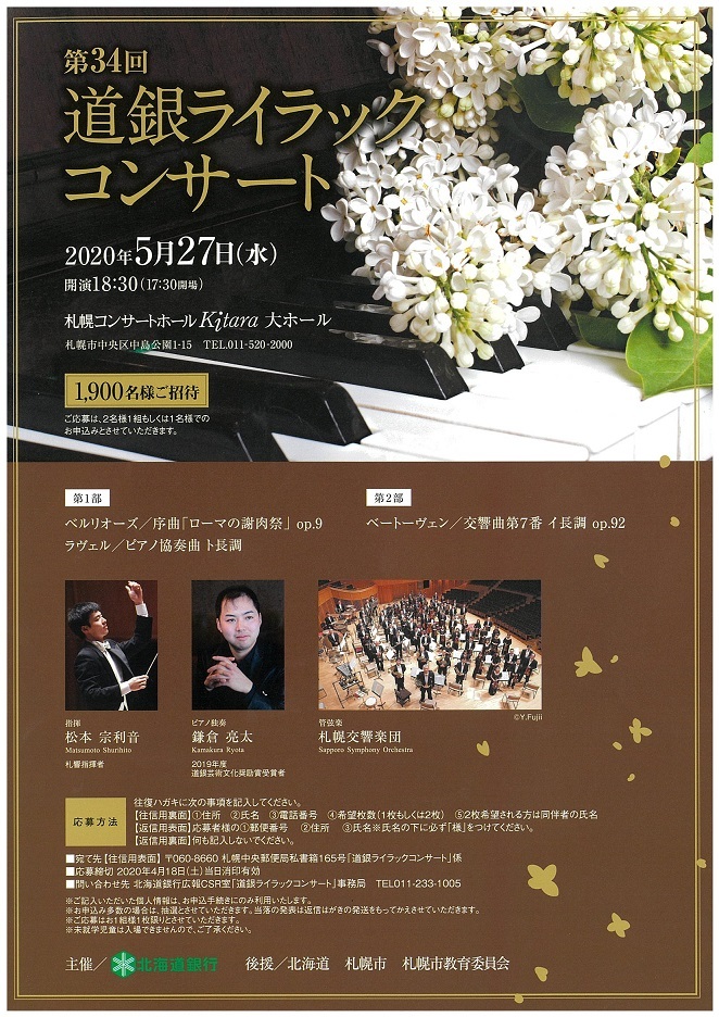 | お問い合せ先 | 北海道銀行広報CSR室「道銀ライラックコンサート」事務局 TEL:011-233-1005 |