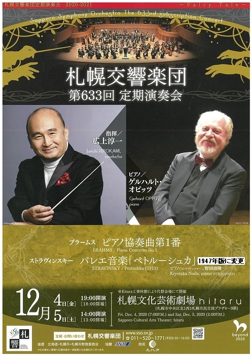 2025-2026シーズンの後期、10月~3月開催分の『札幌交響楽団定期演奏会』...