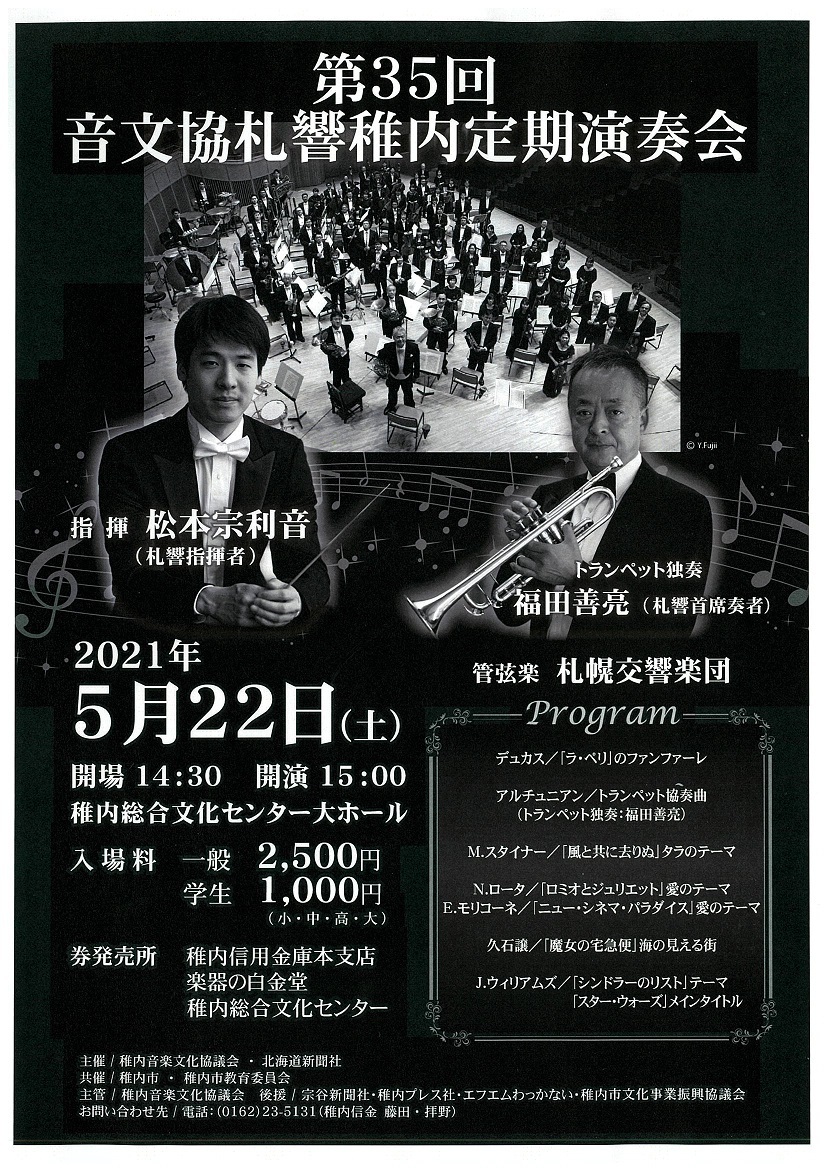 5月22日に開催を予定しておりました『第35回 音文協 札響稚内定期演奏会』の中止を決定いたしましたのでお知らせいたします。