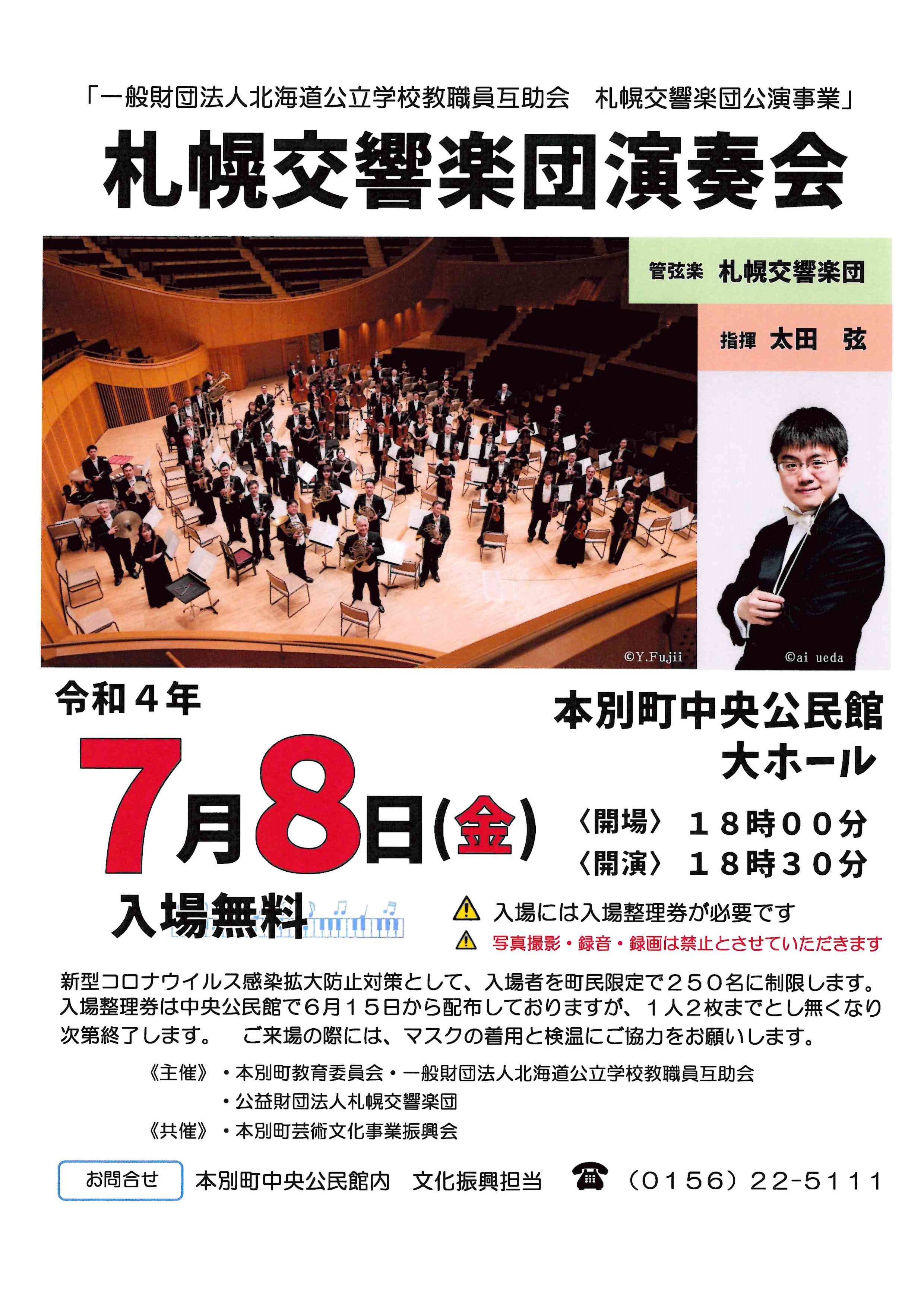 本別町 札幌交響楽団演奏会 (北海道公立学校教職員互助会公演事業)