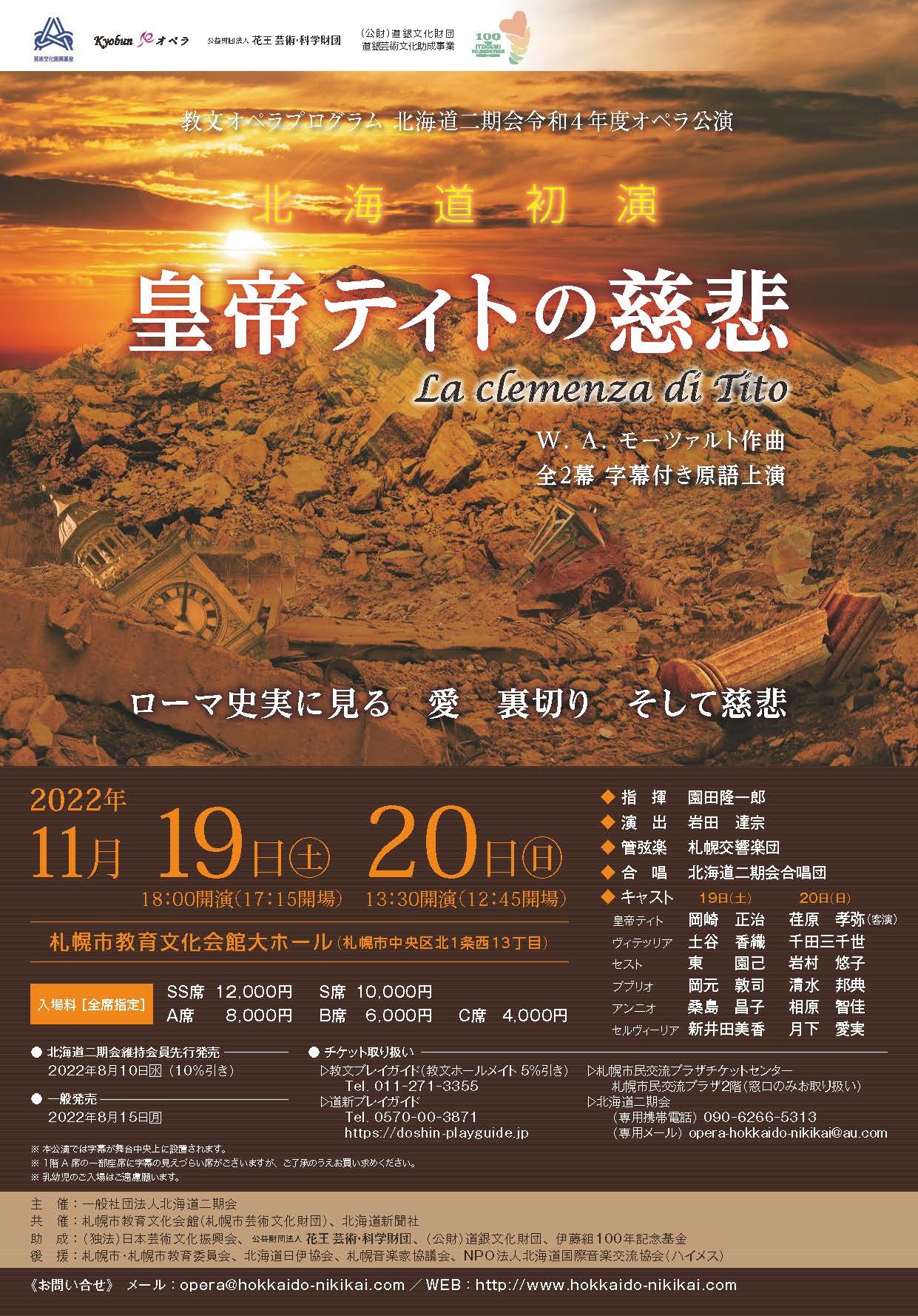 | お問い合せ先 | 北海道二期会:メール/opera@hokkaido-nikikai.com、WEB:http://hokkaido-nikikai.com |