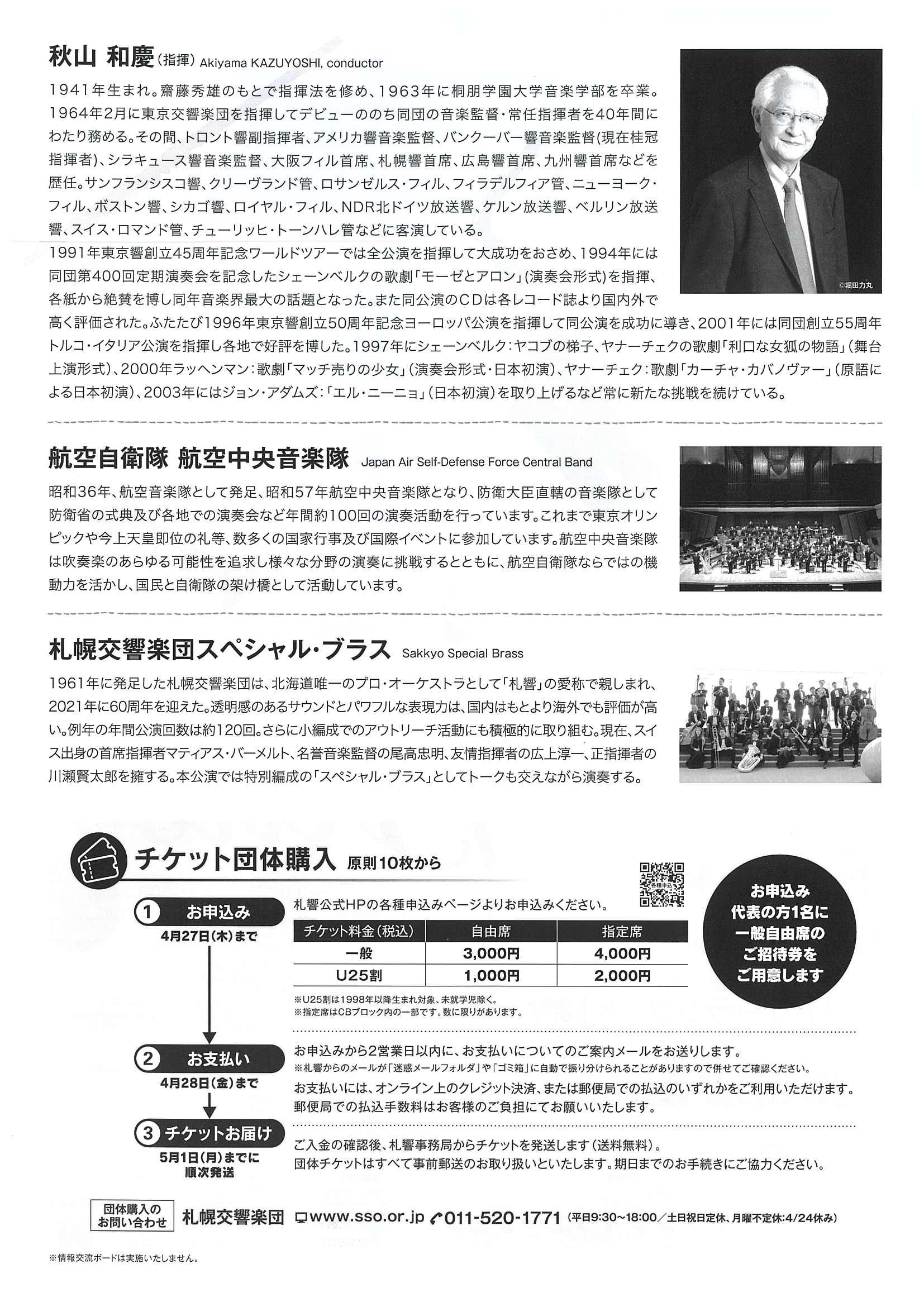 | 後援 | 北海道、札幌市、札幌市教育委員会、北海道吹奏楽連盟、札幌地区吹奏楽連盟、札幌市中学校吹奏楽研究協議会 |