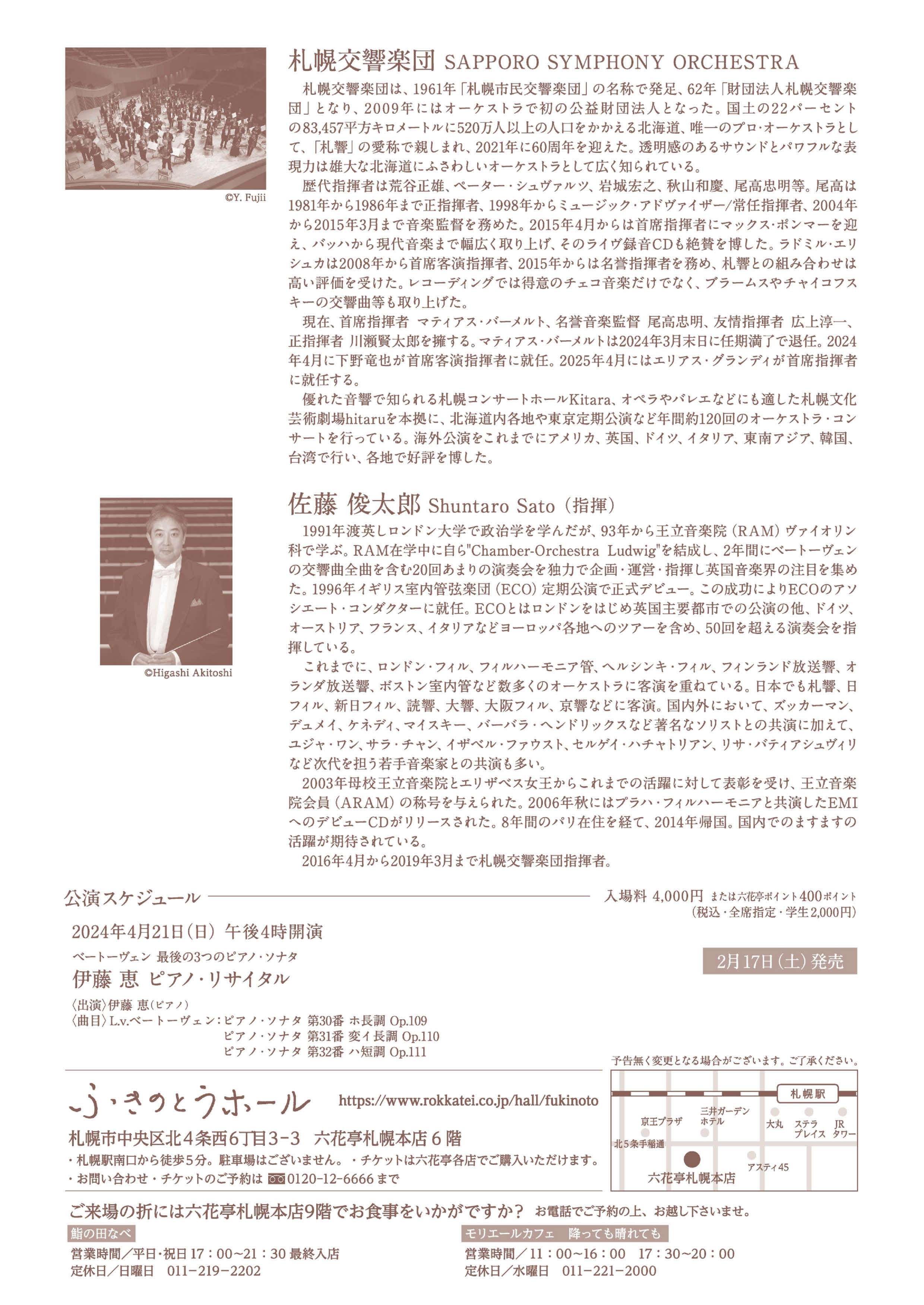 2025-2026シーズンの後期、10月~3月開催分の『札幌交響楽団定期演奏会』...