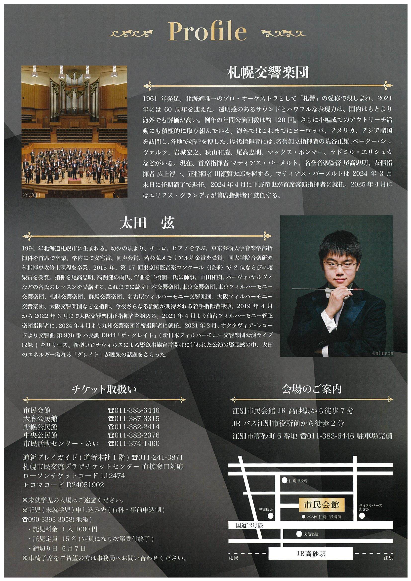 | 主催 | NPO法人えべつ楽友協会、北海道新聞社共催:江別市教育委員会 |