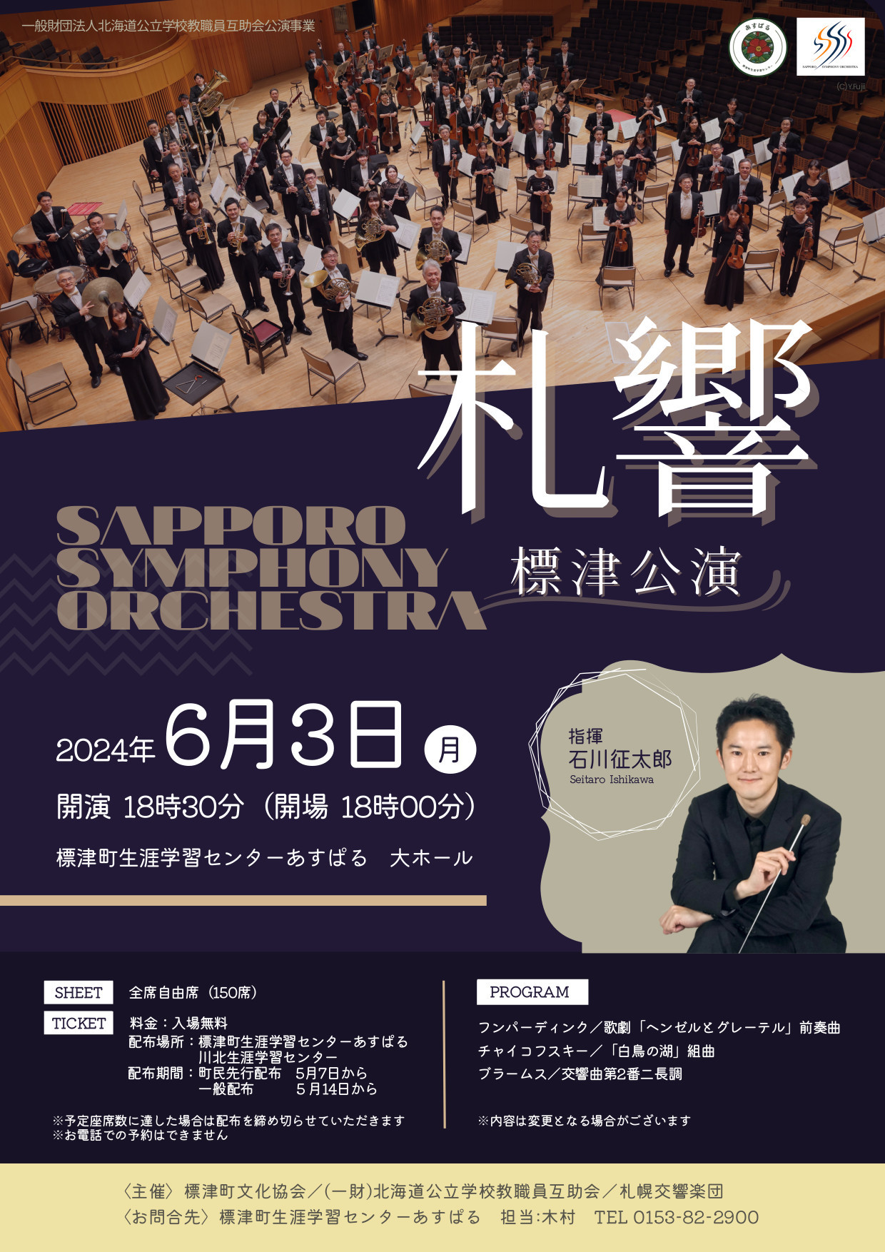 | 主催 | 標津町文化協会、(一財)北海道公立学校教職員互助会、札幌交響楽団 |
