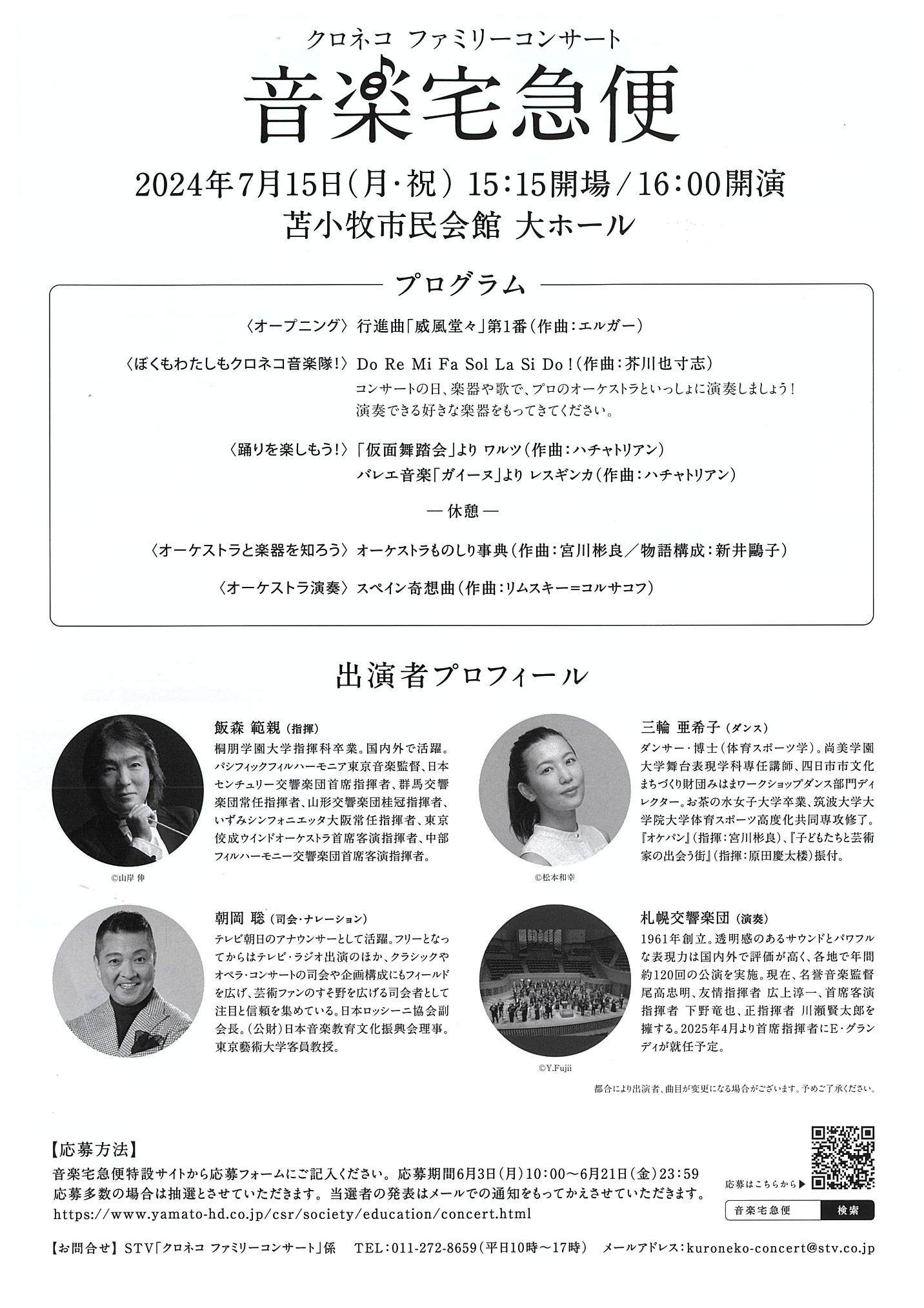 | お問い合せ先 | STV「クロネコファミリーコンサート」係 011-272-8659(平日10時~17時) |