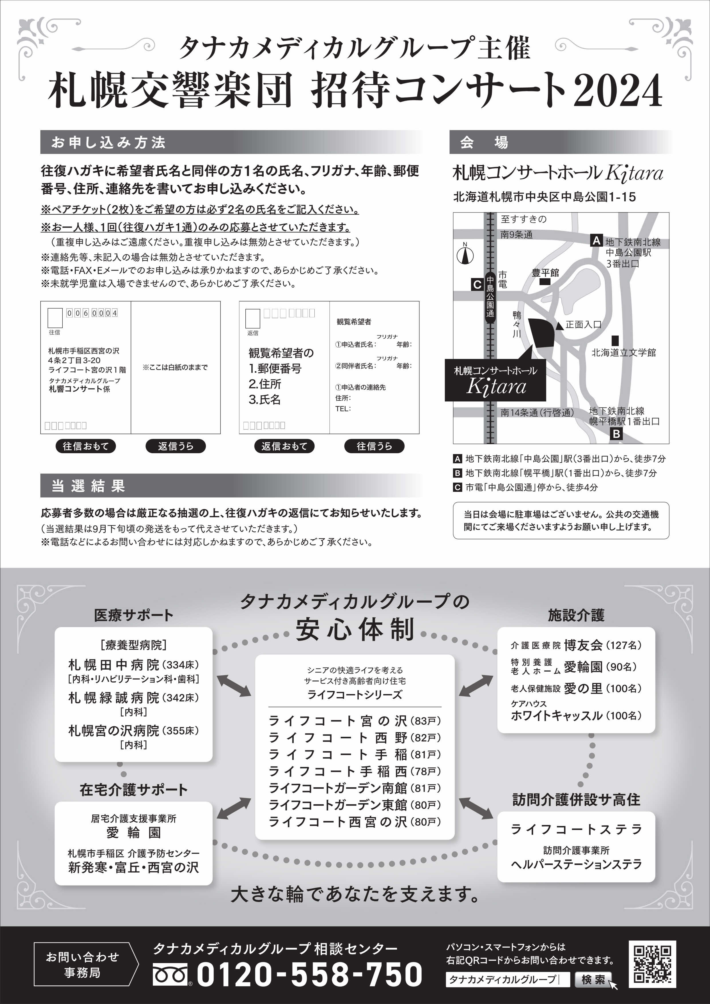 | お問い合せ先 | タナカメディカルグループ札響コンサート係 0120-558-750 |