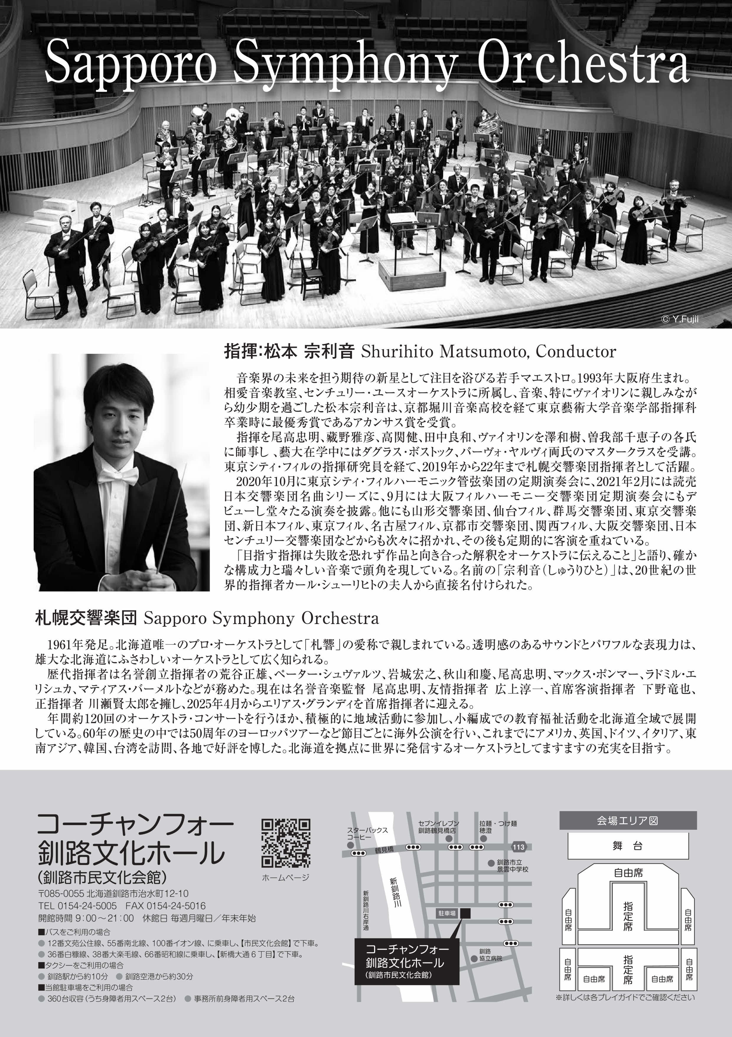 札幌交響楽団釧路定期公演実行委員会 釧路市、釧路市教育委員会、(一財)釧路市民文化振興財団、北海道新聞社 |