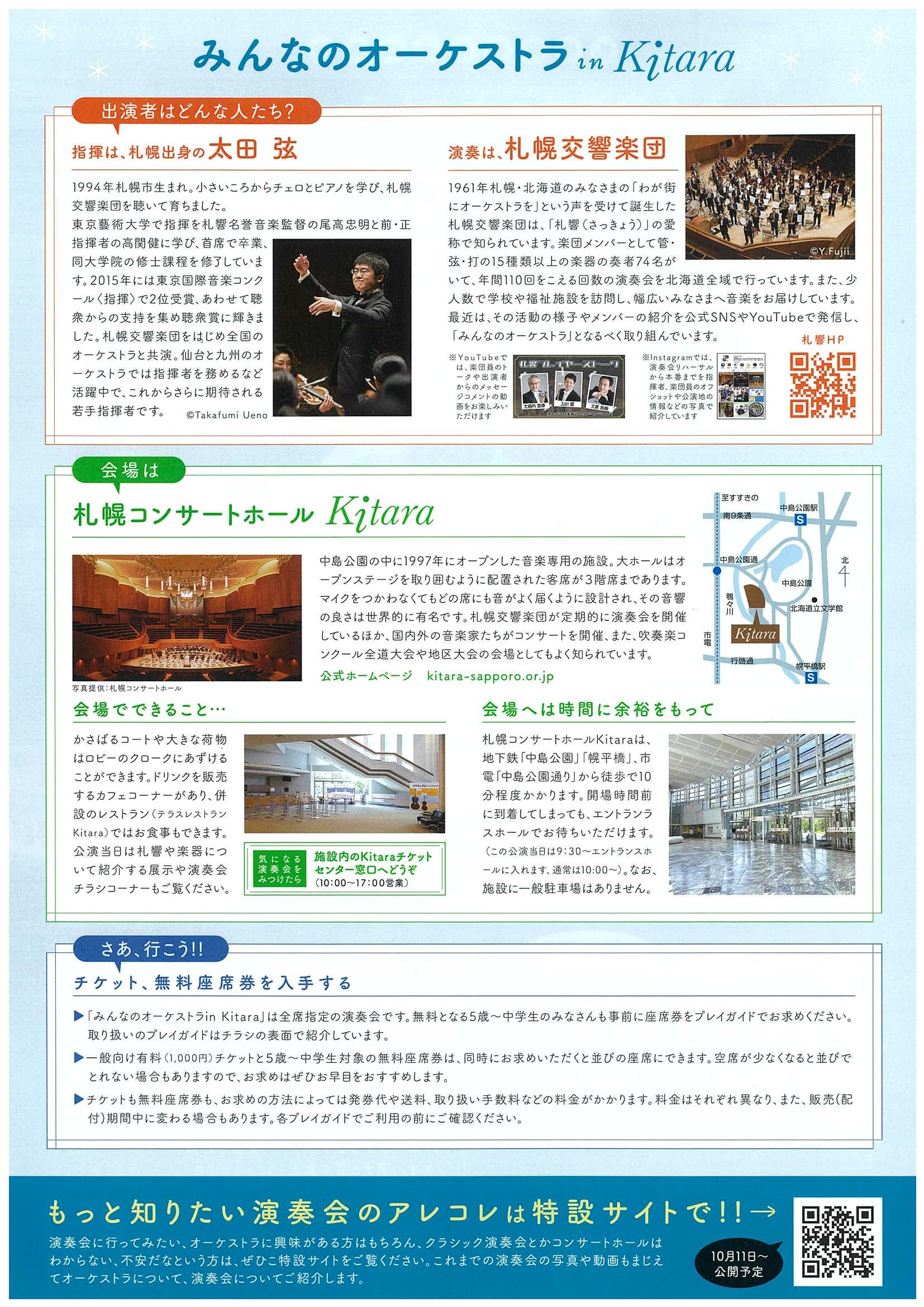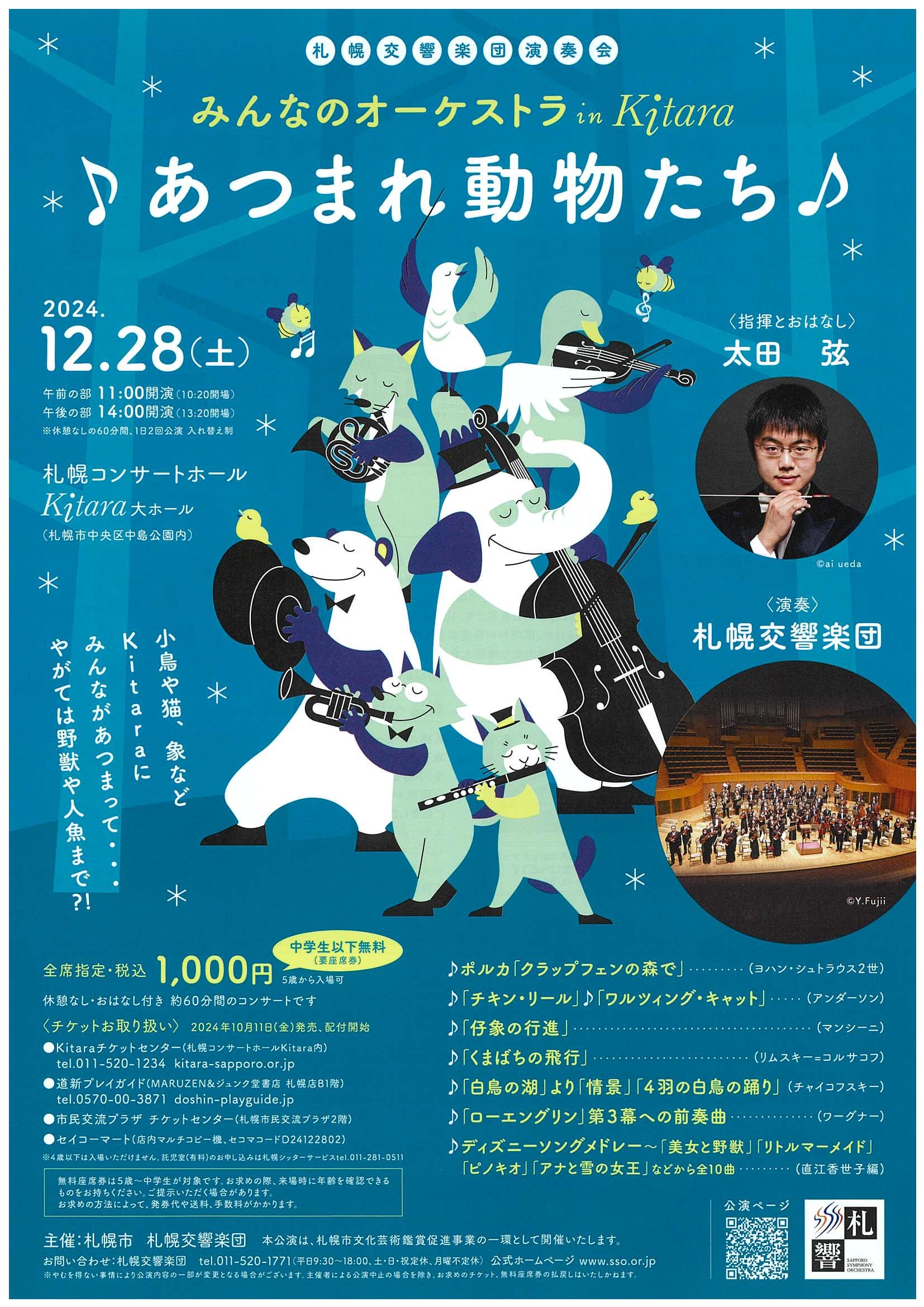 札幌市と共催で開催する1,000円で聴くことができるお話つきの演奏会です。8/6開催の「hitaruでオーケストラ!」に続くKitara版。冬休み期間中の日中に開催するこの公演は、5歳から入場可、さらに、5歳~中学生は無料となります。