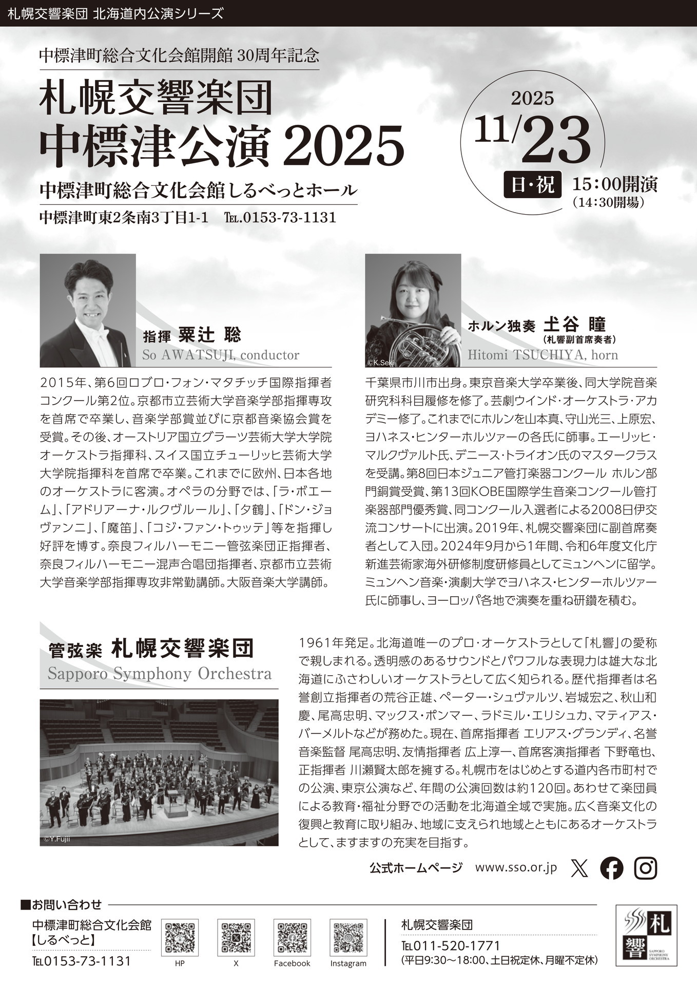 | 主催 | 一般財団法人中標津町文化スポーツ振興財団、札幌交響楽団、北海道新聞社 |