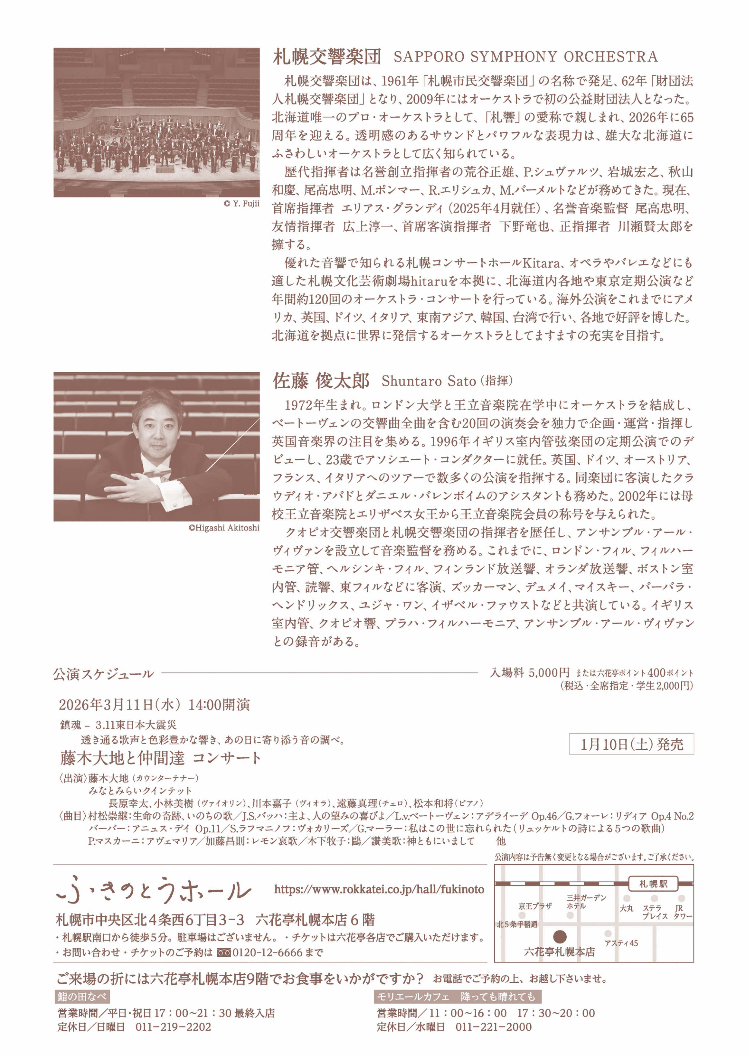 | 主催 | ㈱六花亭、札幌交響楽団 |