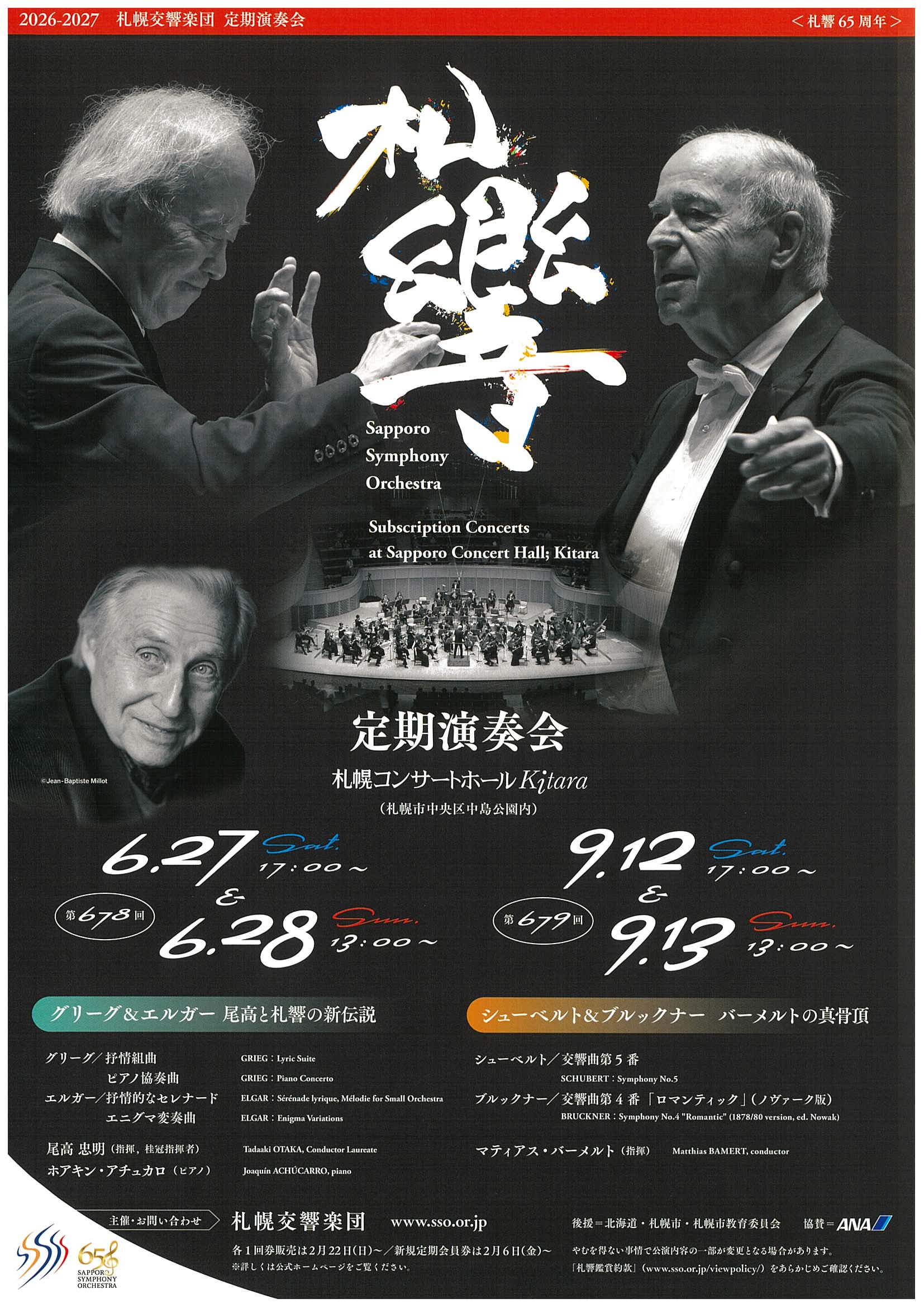 楽団創立65周年の節目、これまで札響サウンドを育んできた指揮者陣たちと、伝統を引き継ぎながら、新たなる時代に向けて挑戦していきます。
